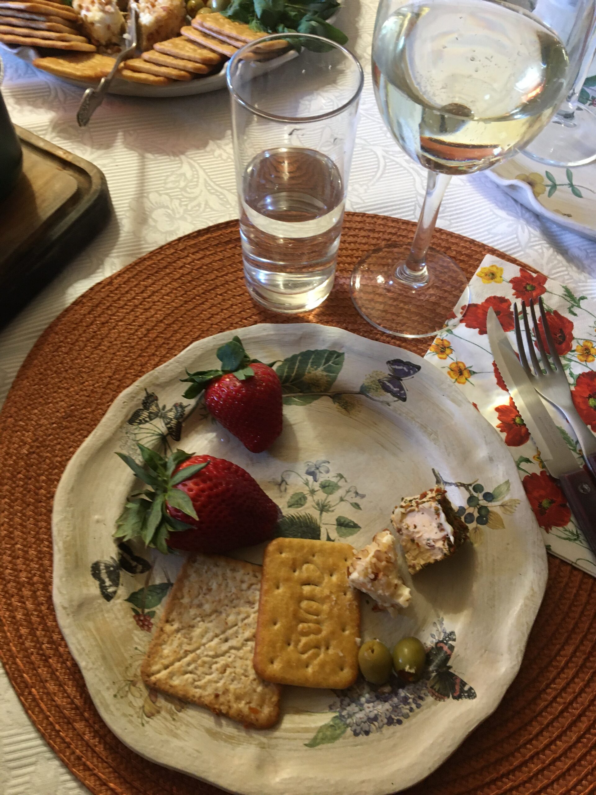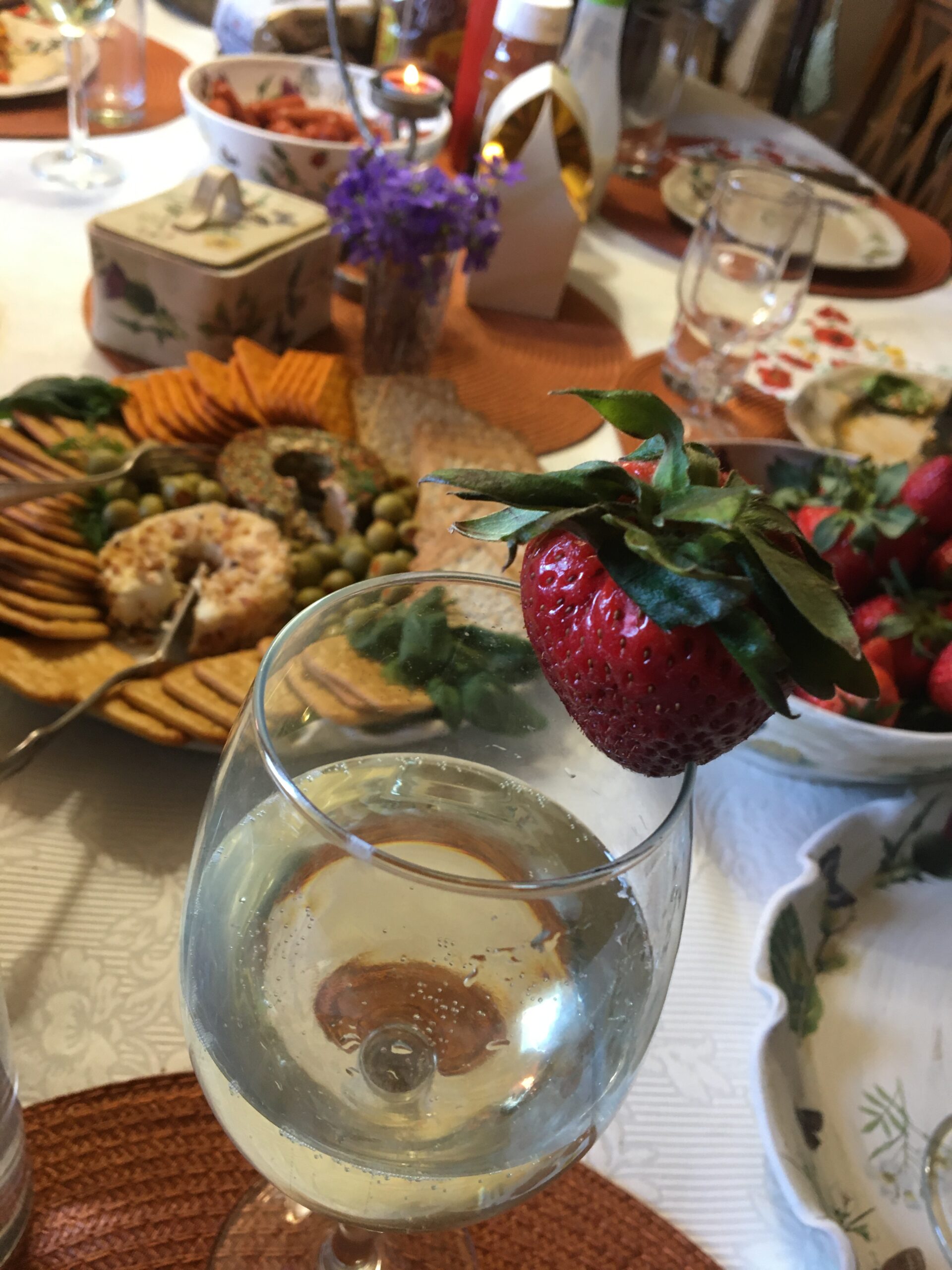 Aamiaisen jälkeen aloin heti tehdä valmisteluja, sillä illaksi oli kutsuttu vieraita. Kylään tulivat nuorempi sisareni Hanna-Liisa ja eräs Allanin ystävä Kristo. Todellisuudessa kutsuimme myös Allanin veljen ja veljen puolison ja minun vanhemman sisareni miehineen, mutta selvisikin, että Ardon ja Tiinan piti sinä aikana olla töissä ja Marie ja Raido, joiden piti samana päivänä palata Turkin matkaltaan, olivat päättäneet jatkaa matkaansa ja menivät Italiaan. Alla kuitenkin kuvia juhlapöydästämme. Järjestin tietokilpailun, jossa oli minua ja Allania koskevia kysymyksiä. Keskustelimme, joimme ja söimme ja nautimme illasta. Oli oikein kiva ilta!